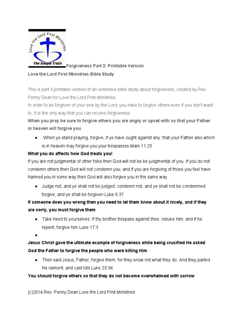 Are you looking for a free bible study on forgiveness with a scripture reading guide and downloadable, printable pdfs? Each guide integrates bible study, prayer, worship,. These study guides are available by free download from our web site www.christianethics.ws. Topical bible study on forgiveness. This pdf study explains the.