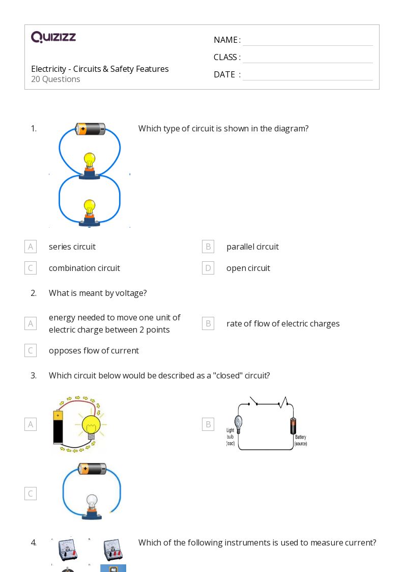 Printable circuits Worksheets for Year 10 Quizizz