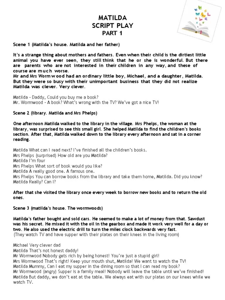 Such may be the essence of the book matilda the musical script, a literary masterpiece that delves deep into the significance of words and their. Matilda the musical act 1. But not everyone is born the same. Matilda script by beatty theatre company. Some will grow to be butchers, or bakers or candlestick makers.